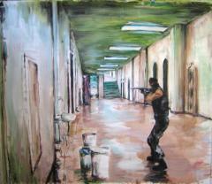 Interieur Badezimmer ▪ Michael Karl Harms counterstrike vs. Gutenberg – Acryl auf Leinwand – MKH 2011 Teestunde – Acryl auf Stoff – MKH 2007